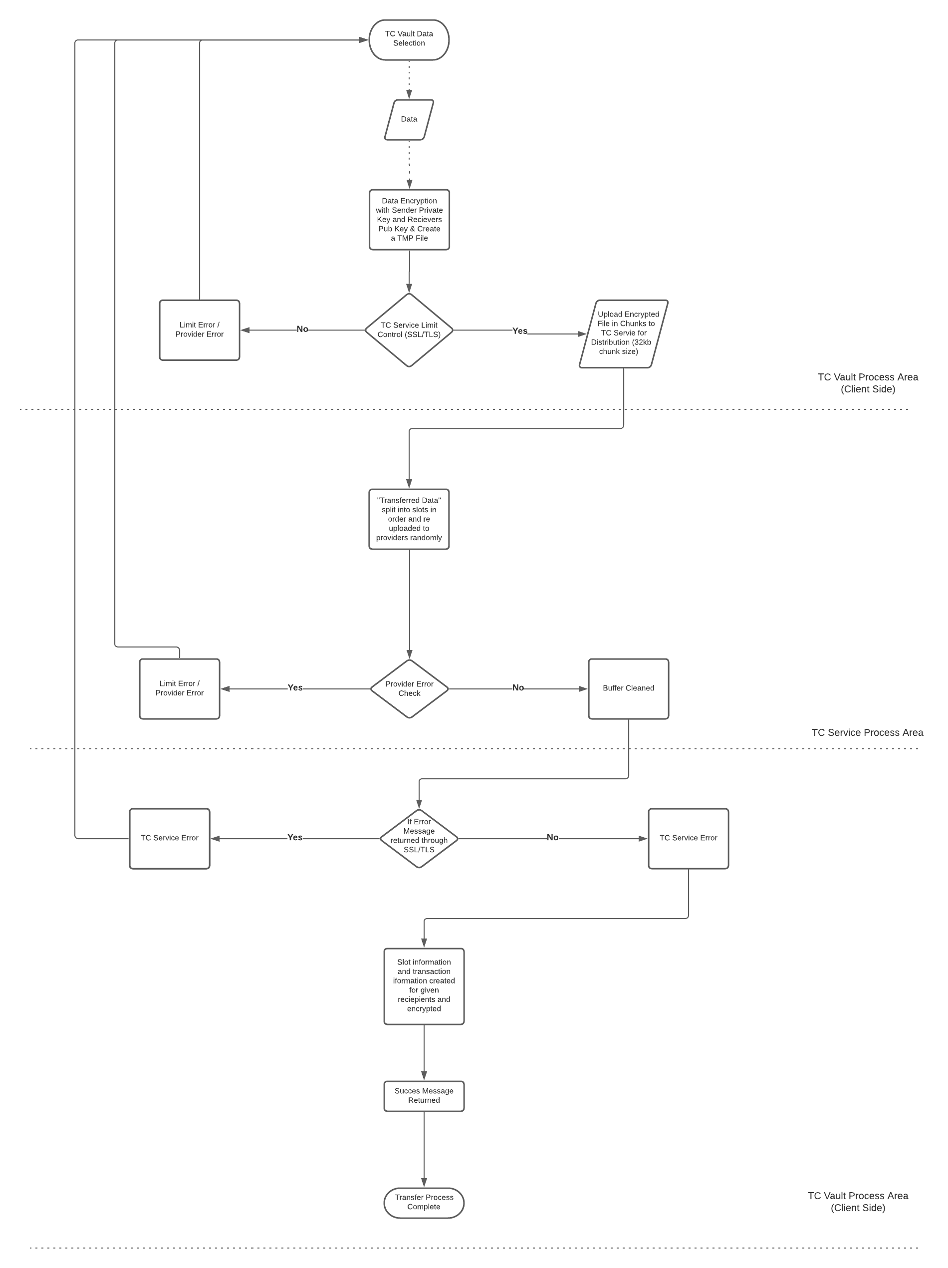 The file to be sent is then encrypted with the sender’s private key and the public key for the receiver. After encryption is done, the file is parsed into chunks and sent to the TransferChain for distribution across multiple storage nodes using the same methodology. When the App receives notice that the file has been successfully stored, slot and transaction information is created for each recipient and made available to the recipients.